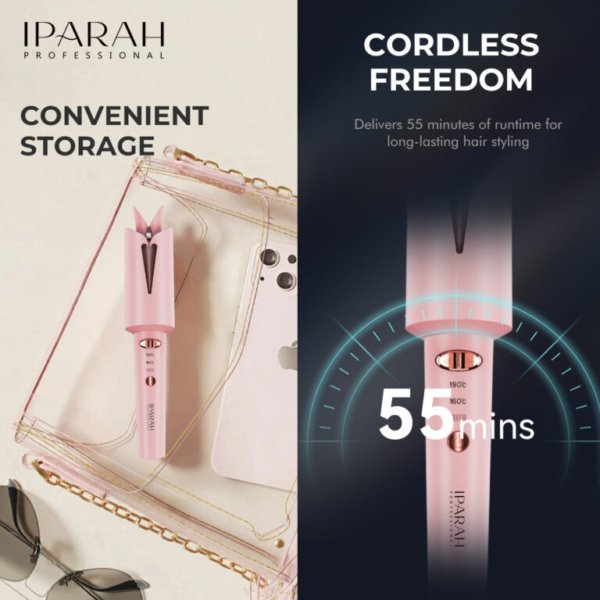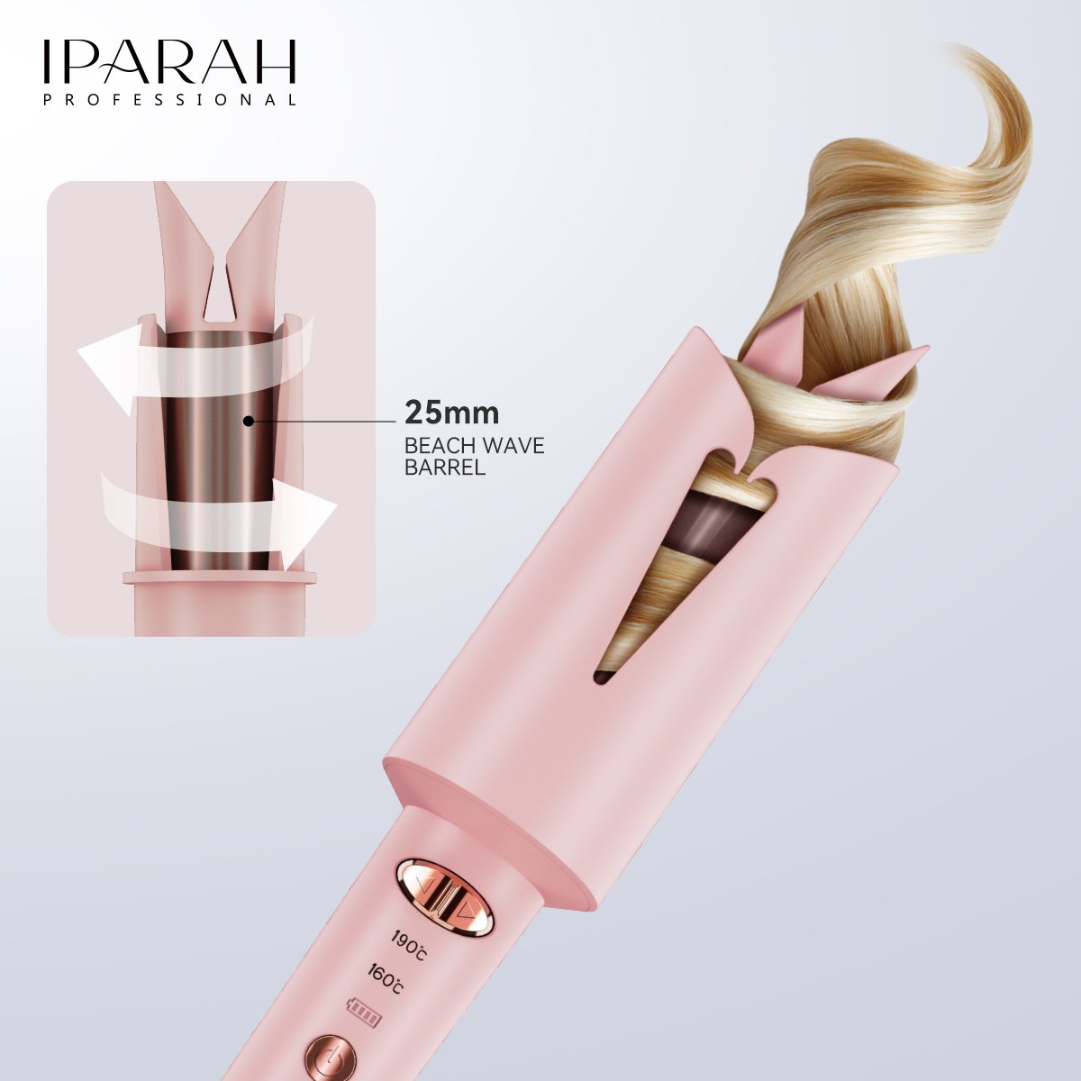 - Wrap hair around the 25mm ceramic barrel, hold & release.