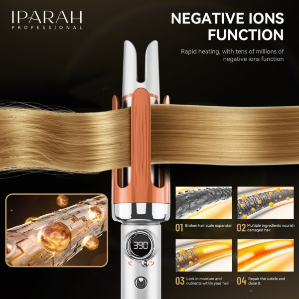 - Automatic curling mechanism for perfect curls with no skill needed.